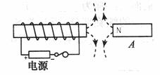 25.(11·青海)如图所示是电磁铁和永磁体产生的磁场,请标出永磁体A左端的磁极和电磁铁电源的正负极。