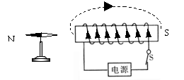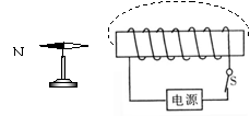 38.(2012衡阳)如图所示,开关闭合后,标出小磁针静止后的S、N极。