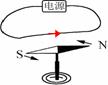 42.(2012日照)导线在通电的瞬间放在其下面静止的小磁针转向如图所示,画出导线中电流方向。