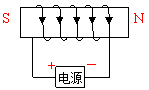 43.(2012怀化)如图所示,根据通电螺线管的电流方向,标出电源的正、负极和通电螺线管两端的磁极。