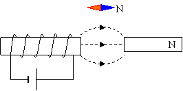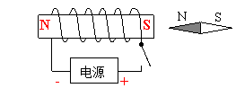 47.(2012抚顺)通电螺线管和条形磁铁中间的磁感线的形状如图所示,上方有一个小磁针,请标出磁感线的方向以及条形磁铁的N极和小磁针的N极。