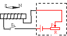 48.(2012威海)请在如图所示的虚线方框内,画上适当的电器元件,与框外的通电螺线管和开关组成一个闭合电路,使此电路在开关S1闭合后能够满足:①改变电流的强弱;②使小磁针静止时方向如图中所示.然后再根据小磁针的指向,在图中标出通电螺线管的N、S极。