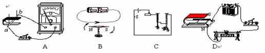 7.(11·新疆)如图所示,导线ab左右摆动的过程中,电流表指针会发生偏转。这个现象所反映的物理原理,在下列电器设备中得到应用的是