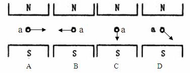 2.(11·烟台)如图所示,a表示垂直于纸面的一根导体,它是闭合电路的一部分,它在磁场中沿图示的方向运动时,哪种情况下不会产生感应电流