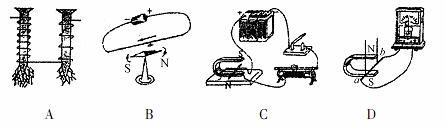 18.(11·日照)科学家探索自然界的秘密,要付出艰辛的努力。十九世纪英国科学家法拉第,经过十年坚持不懈的努力,发现了电磁感应现象,下图中能表明这一现象的实验是
