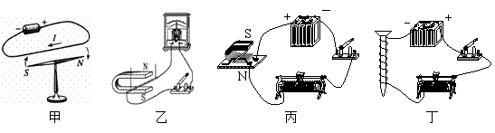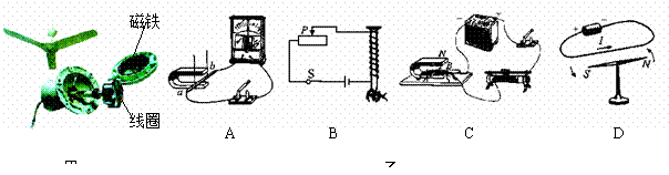 2.(2012无锡)小明在仔细观察如图甲所示的微型电扇结构之后,设想利用微型电扇和电流表制成简易风速计:当风吹动风扇叶片时,电流表指针偏转,且风速越大,电流表示数也越大.图示乙实验中,能说明简易风速计工作原理的是![]()