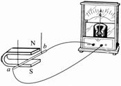 4.(2012福州)在探究“感应电流产生条件”的实验中,将导体ab水平置于蹄形磁铁的磁场中,如图所示。闭合开关后,能使灵敏电流计的指针发生偏转的做法是