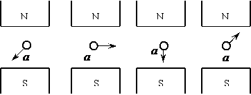 17.(2012南宁)如图所示,a表示垂直于纸面的一根导体,是闭合电路的一部分。它在磁场中沿图示的方向运动时,不会产生感应电流的是
