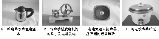 16.(2012绥化)风速计是有风叶和改装的电流表构成的。风速越大,风叶转动越快,电流表的示数也越大,下图中与这一过程工作原理相同的是