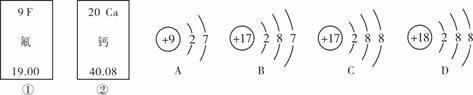 素周期表中的信息,A、B、C、D是某四种粒子的结构示意图。