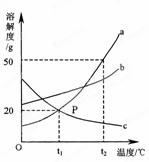 c三种物质的溶解度曲线,a与c的溶解度曲线相交于 P点。 据图回答: