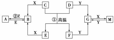 [解析] 由题干信息和框图转化关系得,D、E、Z分别为Al、Fe、Cl2,X、Y分别为HCl、NaOH,则A、B、C、F、G、M分别为FeCl3、FeCl2、FeO、Al2O3、NaAlO2和Al(OH)3(或AlCl3)。