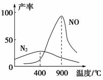 2NO+2H2O,由图可知温度大于900 ℃时温度越高,产物产率越低,平衡常数越小。该反应为气体体积增大的反应,故增大容器体积或恒容条件下充入N2H4均可使平衡右移,增大;而恒容条件下充入惰性气体与使用催化剂均不能影响化学平衡。