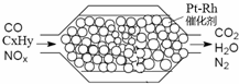 如图表示汽车尾气净化器处理汽车尾气的过程。有关叙述不正确的是