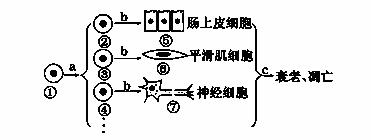 34.下图为人体某细胞所经历的生长发育各个阶段示意图,图中①~⑦为不同的细胞,a~c表示细胞所进行的生理过程。据图分析,下列叙述正确的是