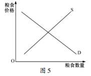 (1)材料一中,刺激国际粮价上涨且影响机制相同的因素有哪些? (请选出序号)试在图5中平行移动供给曲线 S或需求曲线 D 以表示这种变化。(作图时请用 2B 铅笔,并画清楚)(6 分)