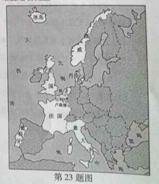 23.欧洲在国际政治中举足轻重。右图白色部分为某国际组织的欧洲成员国,据此判断该组织是