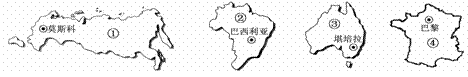 C.③国是世界唯一独占一个大陆的国家 D. 到④国去游览富士山