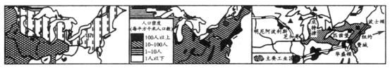 读美国东北部农业带分布、人口密度和工业分布图,完成第23题。