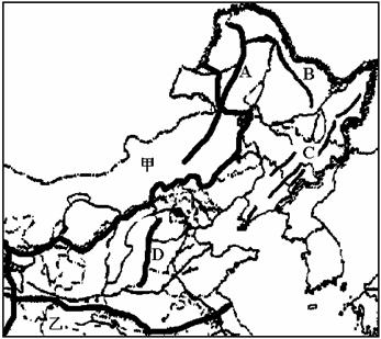 (3)北方地区与乙所在区域之间的分界线是 一线,就温度带来说,该线的南侧属于 ,该线的北侧属于 ;就干湿状况来说,该线的南侧属于 ,该线的北侧属于 。