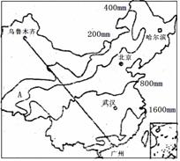 (3)根据图中广州→乌鲁木齐年降水量变化情况,概括出我国降水空间分布规律:______________________________________________________________________。