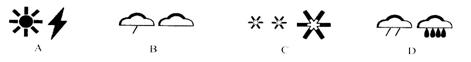 16、下列符号中属于晴转雷阵雨的是:( )