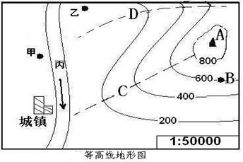 ⑷如果C、D两条虚线中有一条表示小河,该小河应位于___ (C或D处),你的判断依据是_______________ _ _______ 。