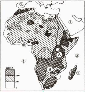 (2)A处为 气候,⑩处为 气候,两地同位于赤道附近,气候类型为何不同?