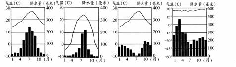 11.下列四幅气温曲线和降水柱状图中,能正确反映北京气候特征的是( )