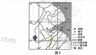 图3中甲地所在的国家,农业以畜牧业为主,财政收入主要来源于货物过境和港口服务业。据此完成9~11题。