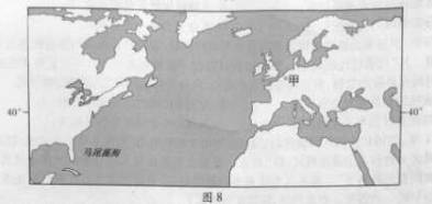 欧洲鳗孵化于马尾藻海,幼体随着洋流到达欧洲西部沿海,然后进入河流生活,成年后回到马尾藻海,产卵后死亡。读图8,完成25-26题。