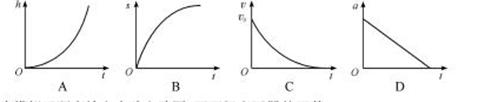 15.如右图,滑块以初速度v0沿表面粗糙且足够长的固定斜面,从顶端下滑,直至速度为零。对于该运动过程,若用h、s、v、a分别表示滑块的下降高度、位移、速度和加速度的大小,t表示时间,则下列图像最能正确描述这一运动规律的是( )