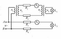 16.图为模拟远距离输电实验电路图,两理想闫雅琪的匝数n1=n4<n2=n3,四根模拟输电线的电阻R1、R2、R3、R4的阻值均为R,A1、A2为相同的理想交流电流表,L1、L2为相同的小灯泡,灯丝电阻RL>2R,忽略灯丝电阻随温度的变化。当A、B端接入低压交流电源时( )