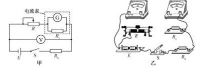 (2)(12分)某研究性学习小组利用伏安法测定某一电池组的电动势和内阻,实验原理如图甲所示,其中,虚线框内为用灵敏电流计G改装的电流表A,V为标准电压表,E为待测电池组,S为开关,R为滑动变阻器,R0是标称值为4.0Ω的定值电阻。