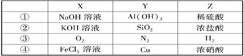 9.常温下,下列各组物质中,Y既能与X反应又能与Z反应的是