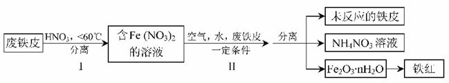 ②步骤II中发生反应:4Fe(NO3)2+O2+(2n+4)H2O=2Fe2O3·nH2O+8HNO3,反应产生的HNO3又将废铁皮中的铁转化为Fe(NO3)2,该反应的化学方程式为 。