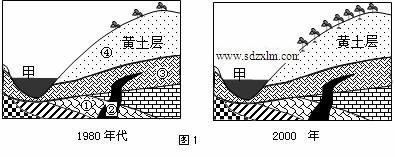 图1为甲河流域(局部)不同时期地质剖面示意图。读图回答1~2题。