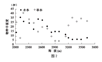 图2为云南高黎贡山北段植物物种丰富度随海拔变化示意图。读图回答5~6题。