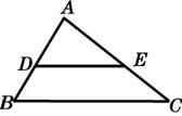 (6分)如图,已知D,E分别在△ABC的边上,且DE∥BC,∠B=60°, ∠AED=40°,求∠A的度数。