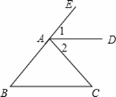 26. (7分)如图,AD平分∠EAC,且AD∥BC,请说明∠B=∠C的理由。
