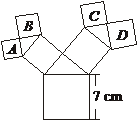 16.如图,所有的四边形都是正方形,所有的三角形都是直角三角形,其中最大的正方形的边长为7 cm,则正方形A、B、C、D的面积的和是_________