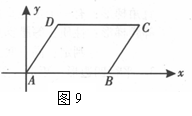 15.如图9,在平面直角坐标系中,□ ABCD的顶点A,B,D的坐标分别是