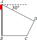得BC=20m,CD=18m,太阳光线AD与水平面夹角为30°且与斜坡CD垂直.根据以上数据,请你求出旗杆AB的高度.(结果保留根号)