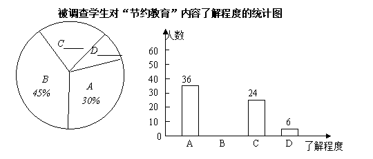 某市教育局督导检查组为了调查学生对“节约教育”内容的了解程度(程度分为:“A-了解很多”,“B-了解较多”,“C-了解较少”,“D-不了解”),对本市一所中学的学生进行了抽样调查,我们将这次调查的结果绘制了以下两幅统计图.根据以上信息,解答下列问题: