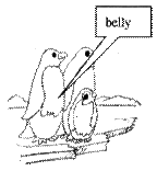 41. Which part of the penguin’s body is white?