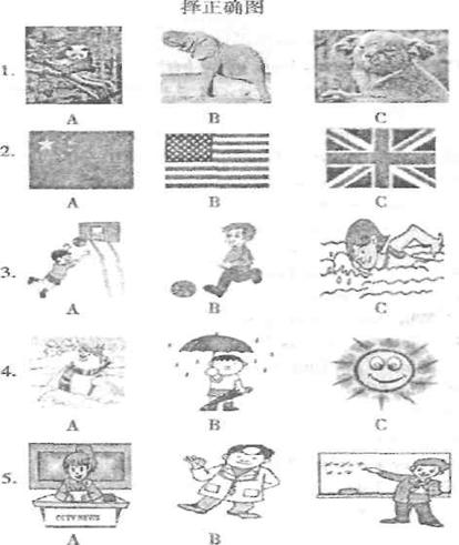I.听句选图。请听句子,选出相应的图画。(5分)