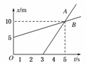 s末A,B相遇,但是在5 s内物体A的位移比B的大;由于位移不同,则5