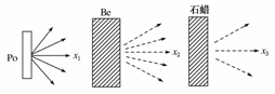 12·滨州联考)如图所示,由天然放射性元素钋(Po)放出的射线x1,轰击铍(Be)时会产生粒子流x2,用粒子流x2轰击石蜡时会打出粒子流x3,经研究知道( )