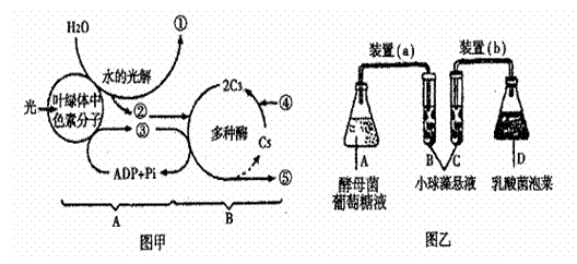 (2)小球藻在适宜条件下繁殖很快。在图乙的装置(a)和(b)中,用相同培养液,在光