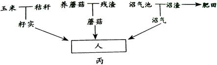 34.(9分)下图甲为一个长期处于稳定状态的生态系统物质流动示意图;图乙是对甲图群落中某一食物链的能量流动情况调查结果;丙是该生态系统中,人类对物质与能量的利用情况部分示意图。据图回答:
